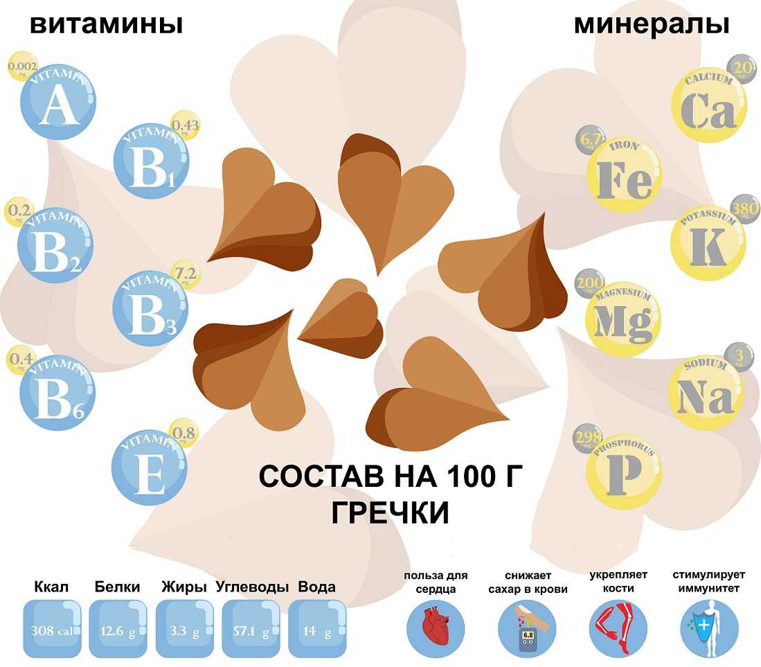Пищевая ценность гречневой крупы включает (из расчета на 100 грамм):