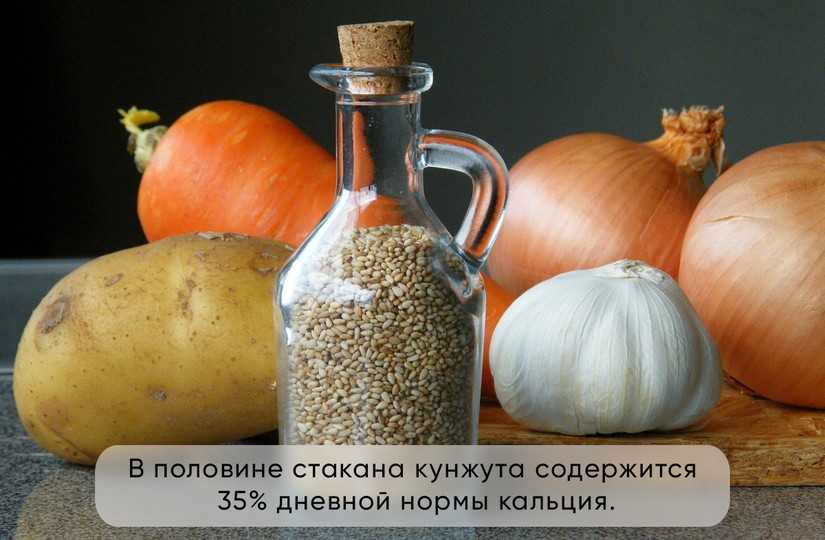 Кальцием богаты неочищенные семена кунжута: 100 грамм таких семян содержат более 1000 мг кальция.
