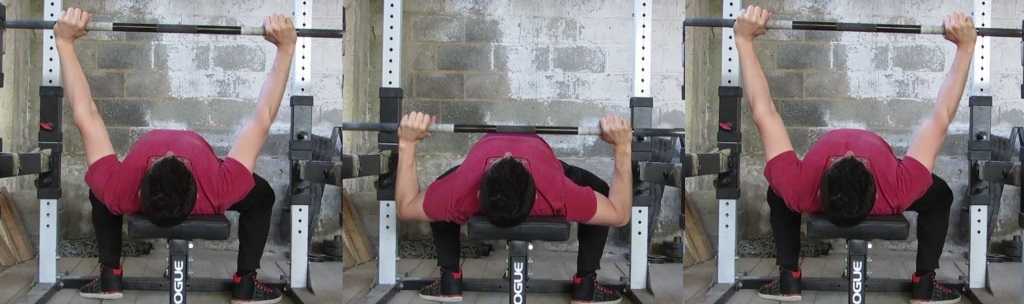Фиксируйте положение локтей. Завершайте каждое повторение фиксацией локтей. Не оставляйте их в согнутом положении чтобы дополнительно нагрузить мышцы. Вы можете не справиться и уронить штангу себе на лицо и умереть. Фиксируйте локти в выпрямленном положении, чтобы ваш скелет, а не мышцы удерживали вес. Заботьтесь о ваших локтях — не перезагружайте их.