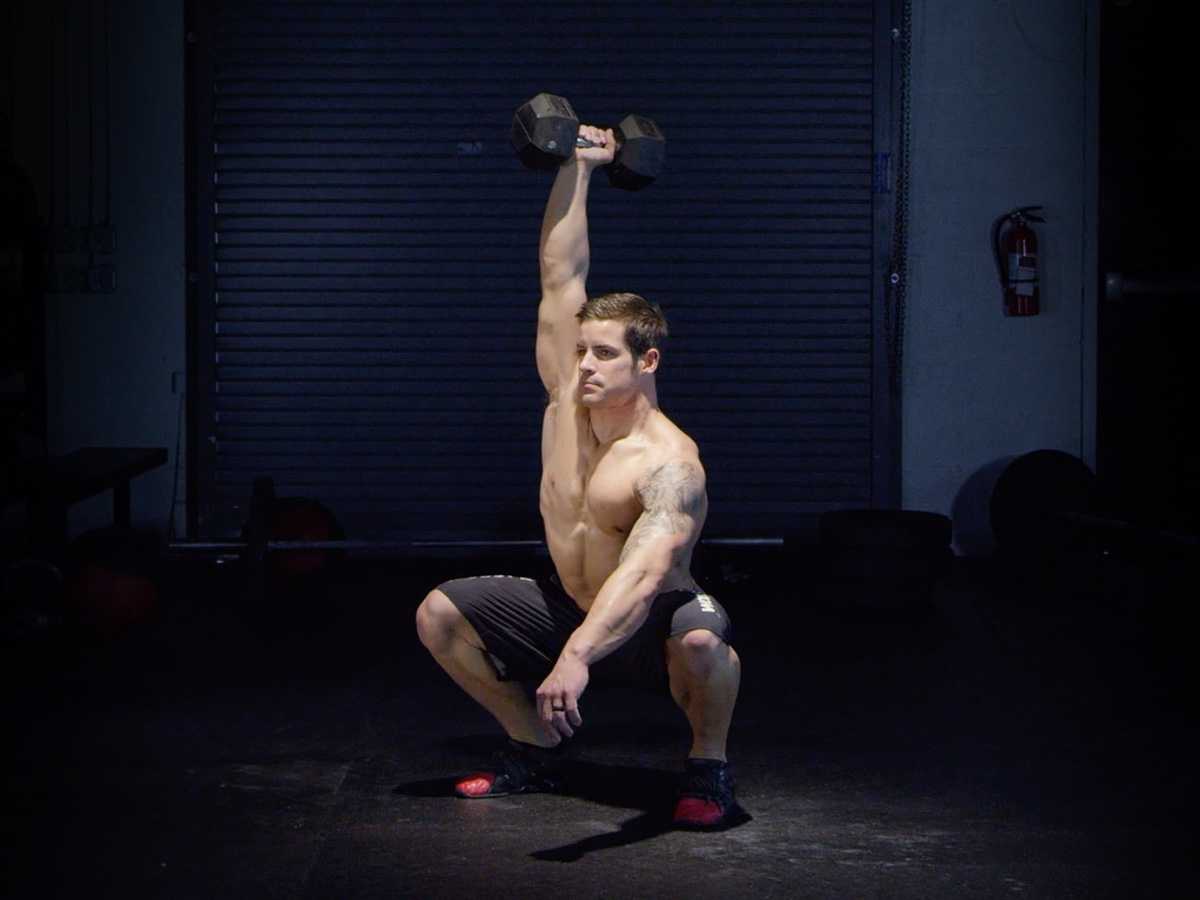 С гантелей над головой