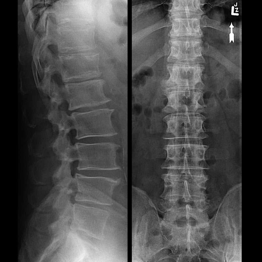 На снимках видно уменьшение щели между позвонками в грудном отделе.