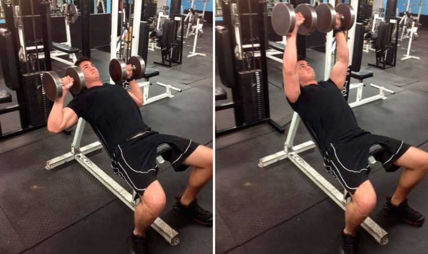 Жим на скамье под наклоном делают по следующему алгоритму: